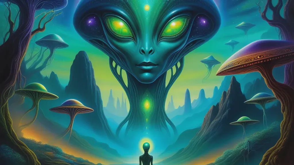 From a Jungian perspective, aliens represent the Shadow and Trickster archetypes—the unknown parts of yourself that operate by different rules and logic. They symbolize the encounter with the truly alien within your own psyche, aspects that don't fit your self-image. The alien invites you to expand your understanding of yourself and embrace the strange, creative, and unconventional parts of your nature.